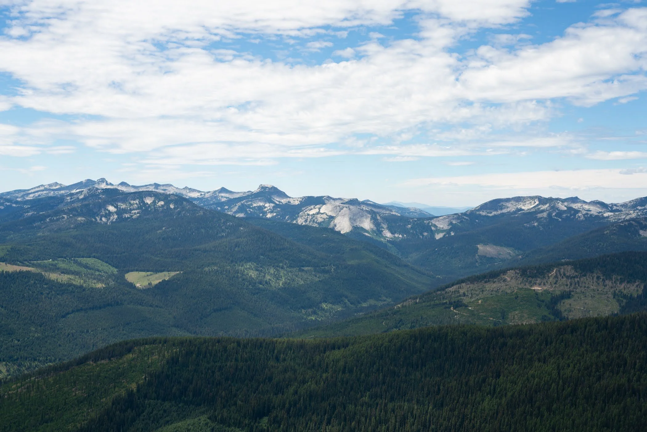 At the summit (elevation 6,844 feet), you’re greeted with sweeping views of the Kootenai River Valley, along with the Cabinet and Purcell ranges. The Selkirks steal the show, though, with familiar peaks like Roman Nose, Lion’s Head, and Myrtle Peak all visible on a clear day.